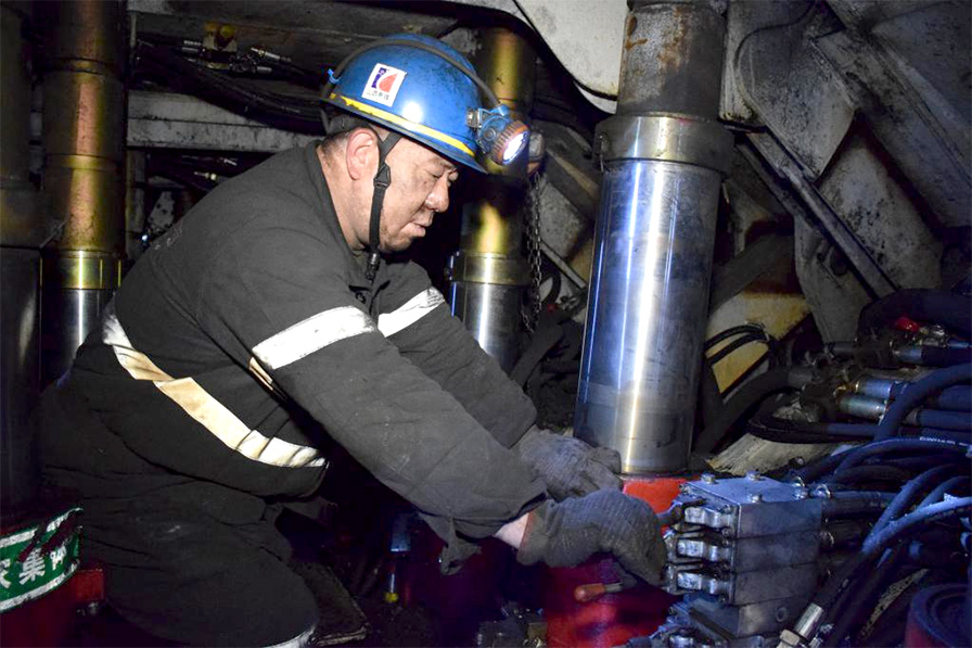 劉小軍是經坊煤礦第一批液壓支護人,見證了經坊煤業從一個年產20萬噸小煤礦發展為生產能力達300萬噸的現代化煤炭企業。從一名普通工人到現在的跟班副隊長,他一直苦干實干,多年的一線生涯,讓他深知自己身上的擔子有多重,所以平日里說說笑笑的他,當進入作業現場的那一刻開始瞬間變得嚴肅,職責讓他始終兢兢業業、一絲不茍。